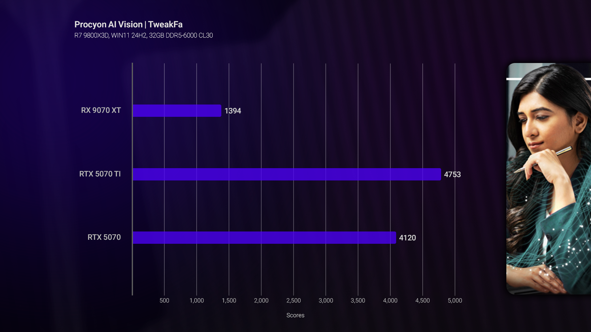 اگر که گیمر نیستین یا در کنار گیم، کار رندر تخصصی هم انجام می‌دین، رندر منظور صرفا پریمیر نیست! طراحی سه بعدی، یا ابزارهایی که به هوش مصنوعی مرتبط میشن و…. قطعا 5070Ti سه-هیچ 9070XT رو شکست میده.